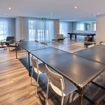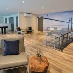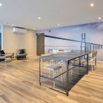 Pour favoriser votre détente et profiter du bon temps en famille ou entre amis, QUARTIER 7 propose des espaces communs que vous apprécierez : deux piscines, des aires de soleil pourvues de chaises longues pour vous détendre, des lounges aménagés, des tables de billard, gyms aux équipements de pointe, salle d’entraînement yoga et plus encore ! Le concept se démarque par le volet rassembleur de ses placettes centrales, des allées piétonnières qui rappellent les rails de chemin de fer, l’inspiration première du projet.